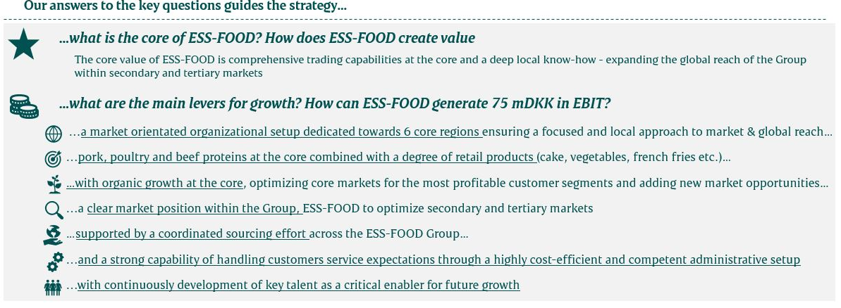 As a starting point, ESS-FOOD has grown strong positions in key markets with solid reputation and supplier base. The complications are seen as new consumer trends & growth opportunities, and how to re-focus our strategic priorities.