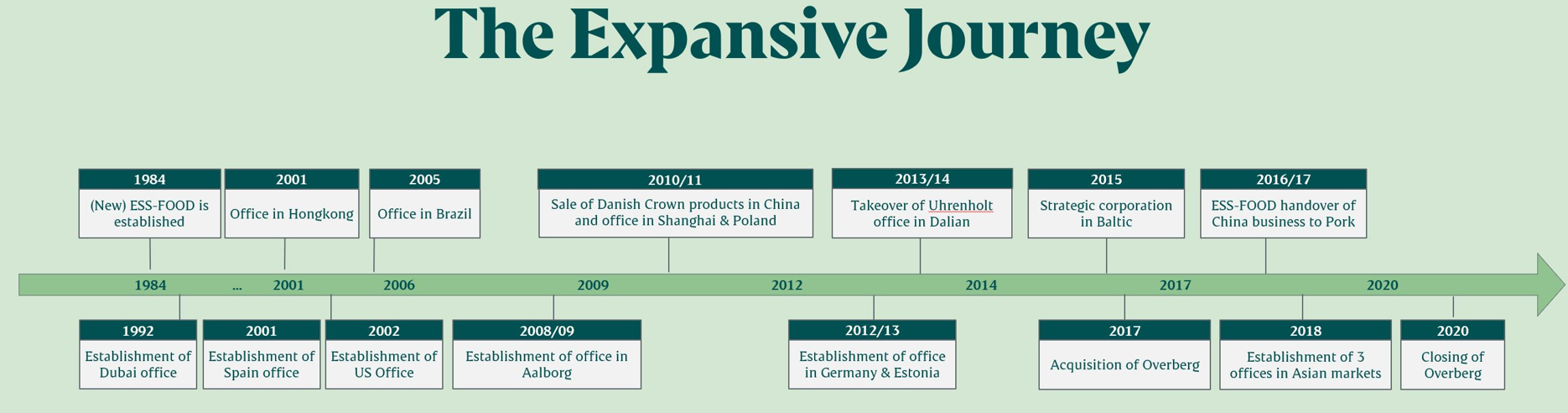 During the mid-90's, Danish Crown had merged various slaughterhouses under one common name and owned the majority of ESS-FOOD. At this time, many of the Danish Crown slaughterhouses maintained their own export and many international offices had been changed from ESS-FOOD to Danish Crown name, whereby the existence of ESS-FOOD was questioned.